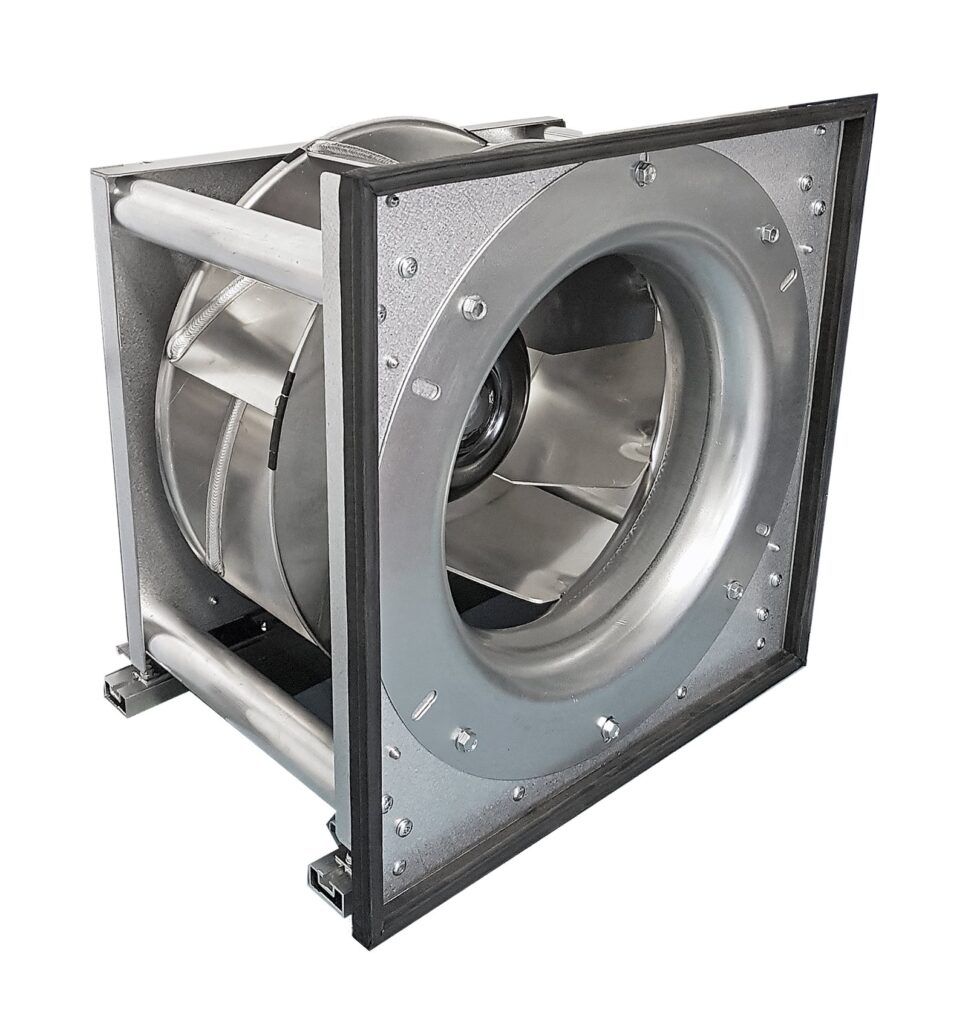 Ljudisolerad takfläkt med EC-motor (MXRC II). Komplett med inbyggd styrutrustning för tryck och temperatur samt MODBUS.