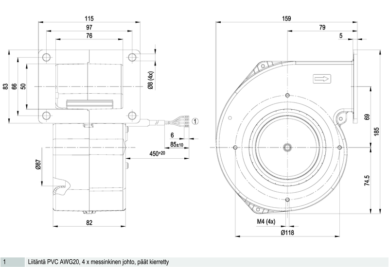 Pyörimissuunta Myötäpäivään roottoriin päin katsottuna