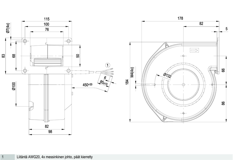 Moottorin malli Elektronisesti kommutoitu EC-ulkoroottorimoottori integroidulla ohjaustekniikalla