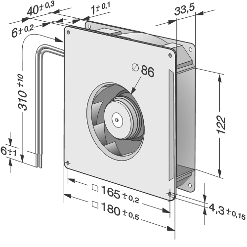 | Siipipyörä | Muovia PA, taaksepäin kaartuvat siivet 6 kpl |