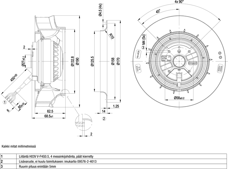 | Moottorin malli | Elektronisesti kommutoitu EC-ulkoroottorimoottori integroidulla ohjaustekniikalla |