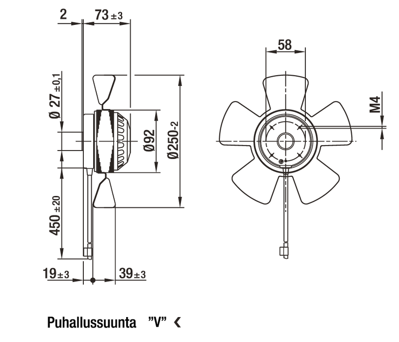 Pyörimissuunta Myötäpäivään roottoriin päin katsottuna