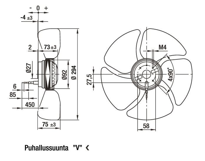 | Moottorin malli | Elektronisesti kommutoitu EC-ulkoroottorimoottori integroidulla ohjaustekniikalla |
