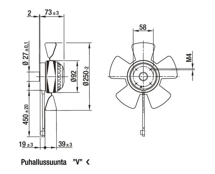 | Moottorin malli | Elektronisesti kommutoitu EC-ulkoroottorimoottori integroidulla ohjaustekniikalla |