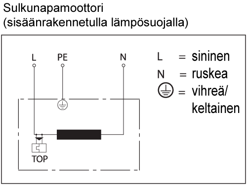 | Hyväksynnät | EN 61800-5-1;EN60335-1;C22.2 No.77+CAN/CSA-E60730-1;UL1004-7+60730 |