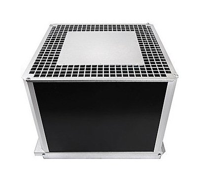 HyBlade-puhallin energiaa säästävällä EC-moottorilla. Neliömäinen seinälevy sekä suojaverkko. HyBlade-sarjan siipipyörien hybridirakenteen ansiosta puhaltimen äänitaso on erittäin alhainen ja puhallin on kevyt. Lisäksi sen hyötysuhde on erittäin korkea.
