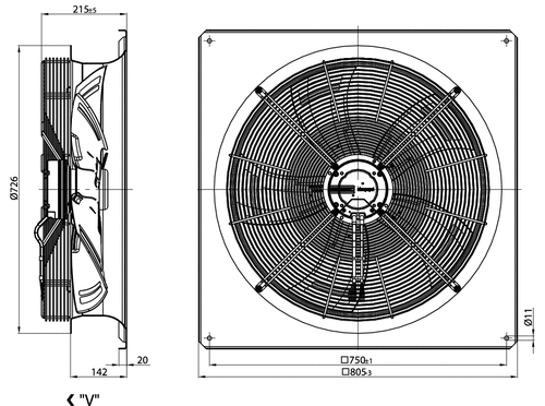 HyBlade-puhallin energiaa säästävällä EC-moottorilla. Neliömäinen seinälevy sekä suojaverkko. HyBlade-sarjan siipipyörien hybridirakenteen ansiosta puhaltimen äänitaso on erittäin alhainen ja puhallin on kevyt. Lisäksi sen hyötysuhde on erittäin korkea.