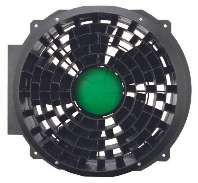 Energiatehokas HyBlade-aksiaalipuhallin EC-moottorilla. Varustettu suojaverkolla ja neliömäisellä seinälevyllä. HyBlade on ainutlaatuinen hybridirakenteinen puhallinsiipi, jolla saavutetaan korkea hyötysuhde ja hiljainen käynti yhdessä pienen painon kanssa.