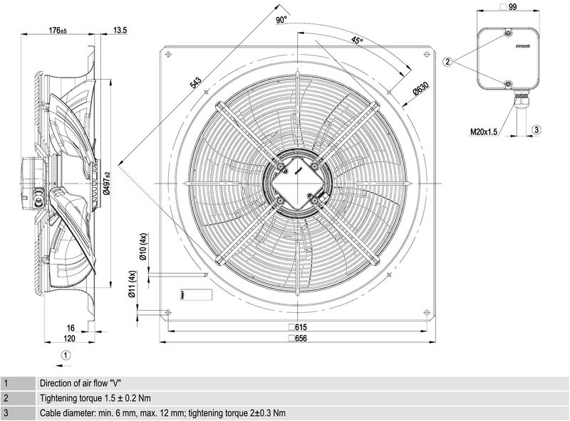 Moottorin malli Elektronisesti kommutoitu EC-ulkoroottorimoottori integroidulla ohjaustekniikalla