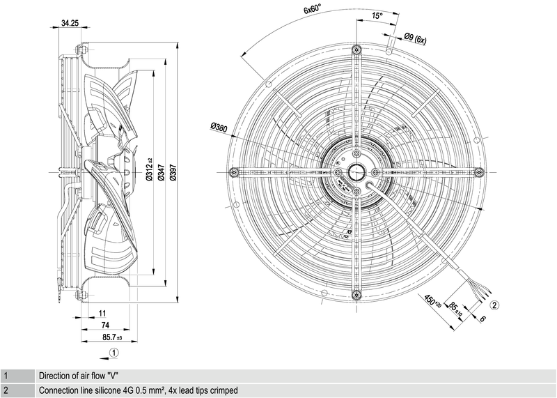 Moottorin malli Elektronisesti kommutoitu EC-ulkoroottorimoottori integroidulla ohjaustekniikalla