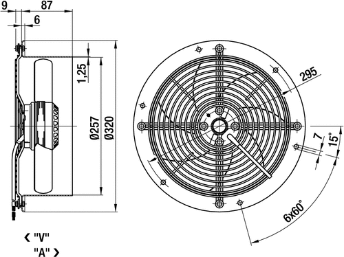 | Siipipyörä | Muovia PA, taaksepäin kaartuvat siivet 6 kpl |