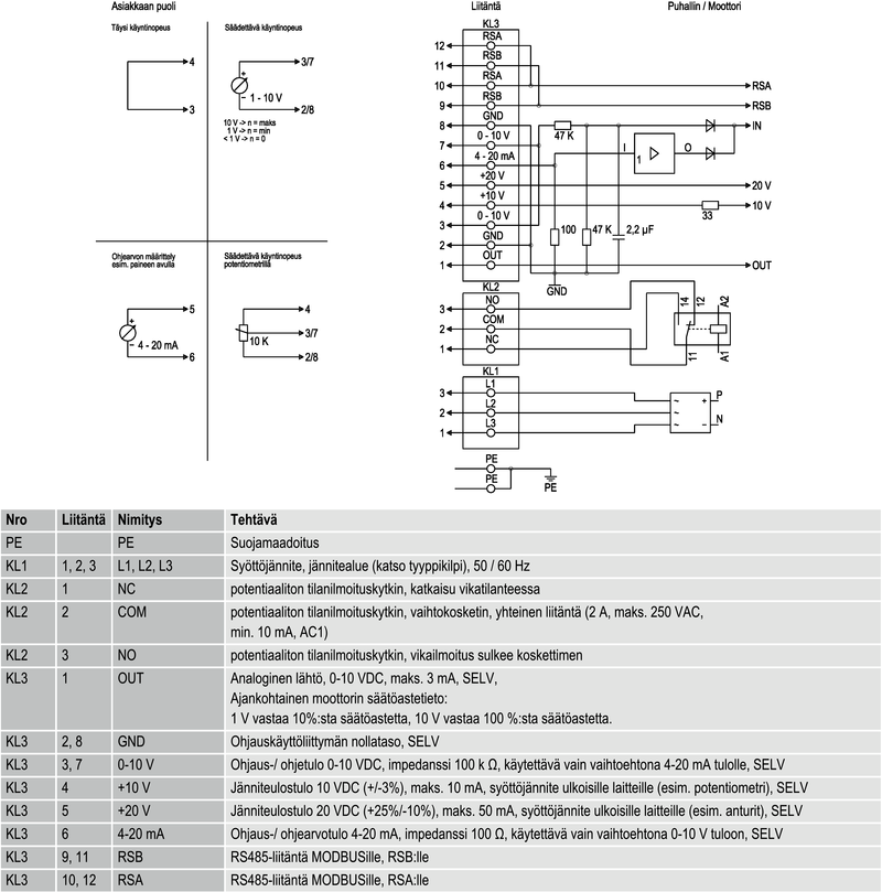 Kierrosluvun säätö 0-10 V signaalilla tai PWM.