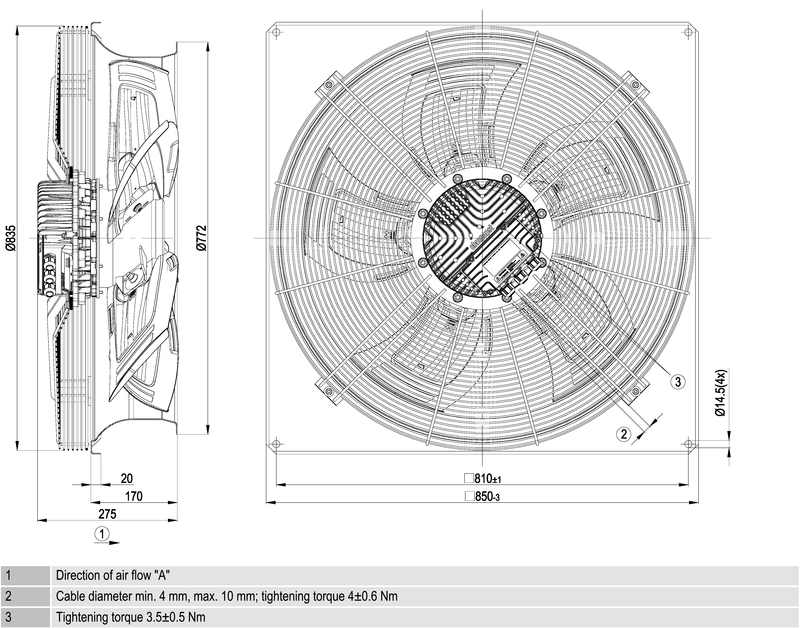 HyBlade-puhallin energiaa säästävällä EC-moottorilla. Neliömäinen seinälevy sekä suojaverkko. HyBlade-sarjan siipipyörien hybridirakenteen ansiosta puhaltimen äänitaso on erittäin alhainen ja puhallin on kevyt. Lisäksi sen hyötysuhde on erittäin korkea.