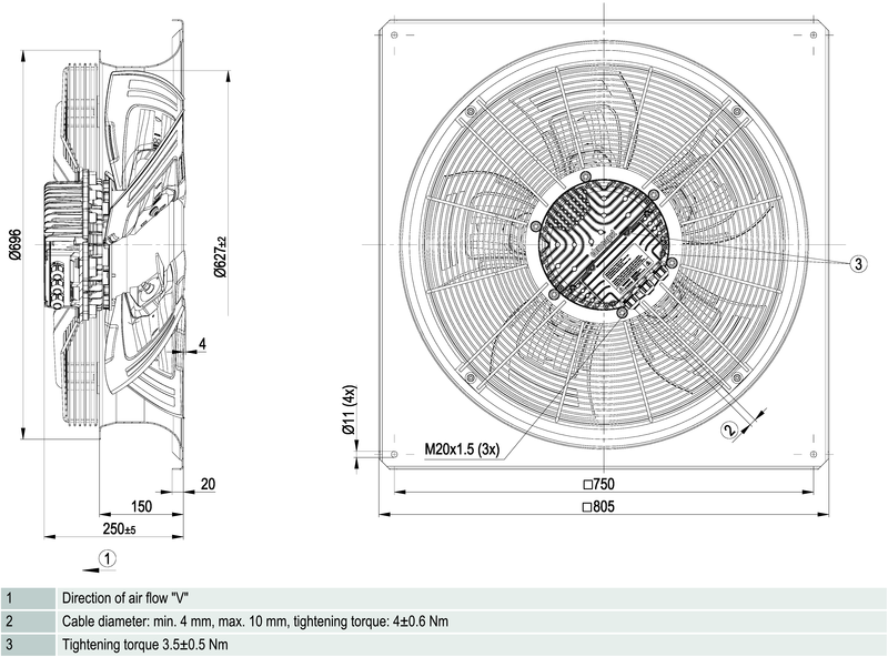 HyBlade-puhallin energiaa säästävällä EC-moottorilla. Neliömäinen seinälevy sekä suojaverkko. HyBlade-sarjan siipipyörien hybridirakenteen ansiosta puhaltimen äänitaso on erittäin alhainen ja puhallin on kevyt. Lisäksi sen hyötysuhde on erittäin korkea.