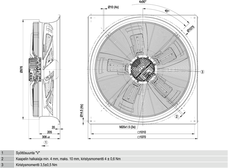 Puhallussuunta “V”. Säätö 0-10 V.