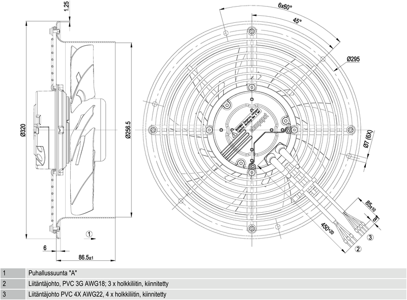| Moottorin malli | Elektronisesti kommutoitu EC-ulkoroottorimoottori integroidulla ohjaustekniikalla |