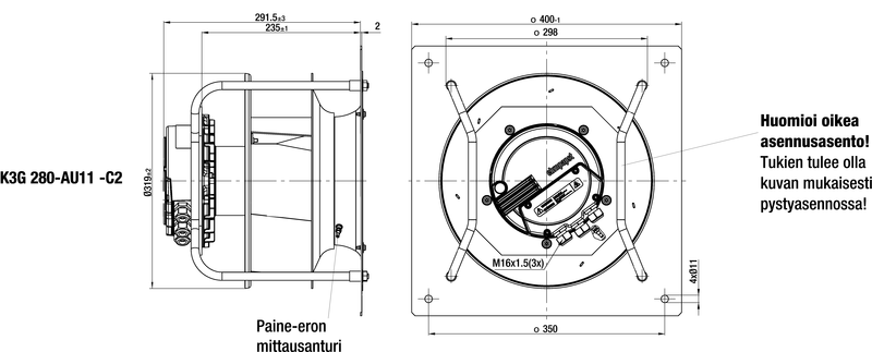 Moottorin malli Elektronisesti kommutoitu EC-ulkoroottorimoottori integroidulla ohjaustekniikalla