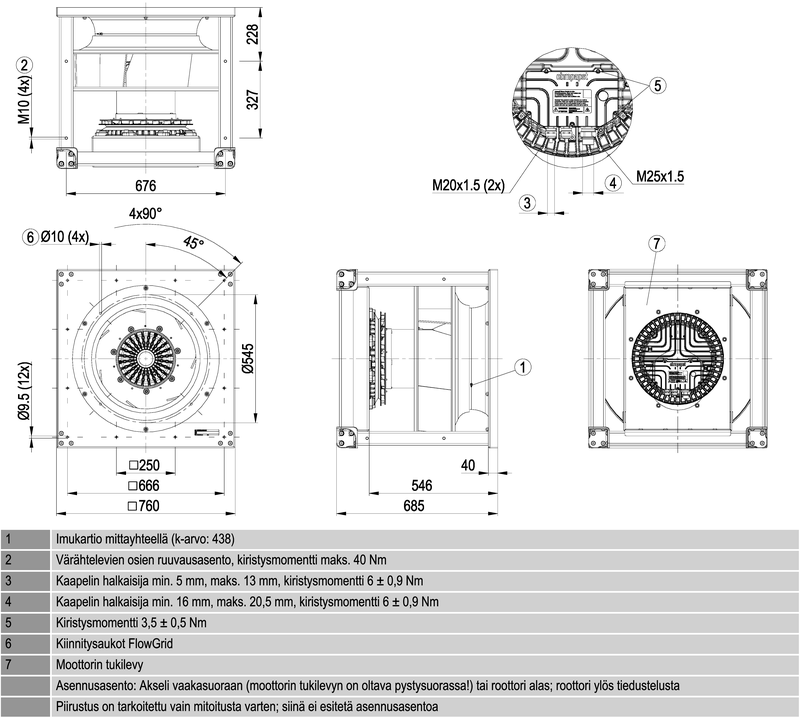 Moottorin malli Elektronisesti kommutoitu EC-ulkoroottorimoottori integroidulla ohjaustekniikalla