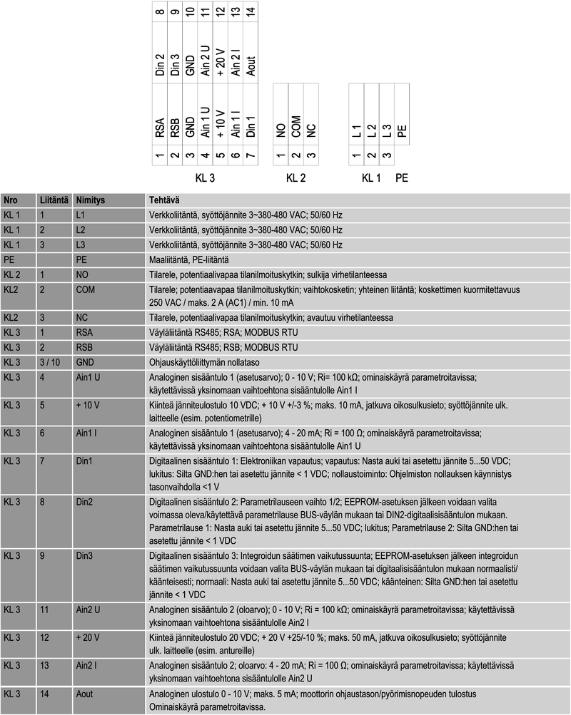 Jännitealue 3~ 380 … 480 VAC