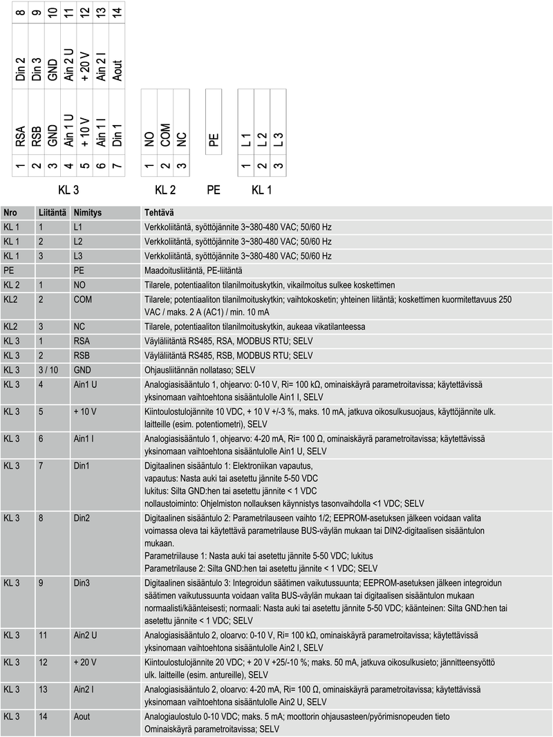 Jännitealue 3~ 380 … 480 VAC