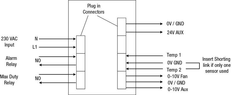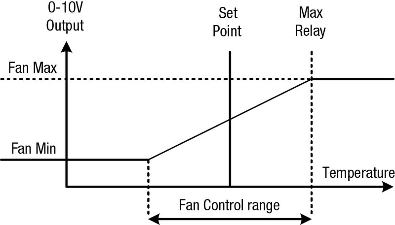 Säädin mahdollistaa kahden puhaltimen itsenäisen pyörimisnopeuden ohjauksen säädettävillä minimi- ja maksimipisteillä lämpötilan funktiona.