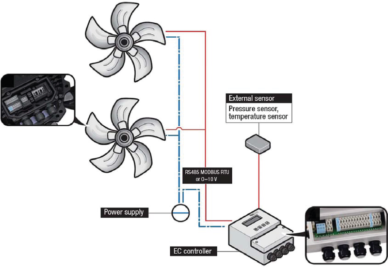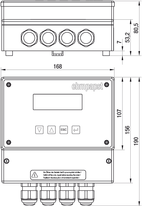 Digitaalinen yleissäädin ebm-papst puhaltimille joissa on EC-integroitu moottori tai muu ulkoinen moottoriohjaus 0-10V sisäänmenolle.