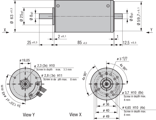 – Förberedd för montering av encoder (HEDS 500) eller broms