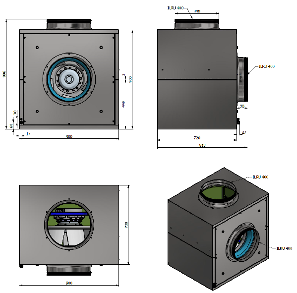 Boxfläkt storlek 900×900 med en effektiv EC-fläkt.