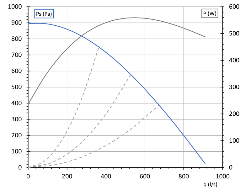 Boxfläkt storlek 500×500 med en effektiv EC-fläkt. Den har ett runt utlopp och ett kvadratiskt inlopp. Man kan även variera riktningen för utloppet genom att enklet med hjälp av snäppen och skruvar modifiera positionen för utloppet. Boxen är isolerad på insidan för tystare drift med 20 mm Polyethylen. Boxen är byggd i galvaniserat stål.