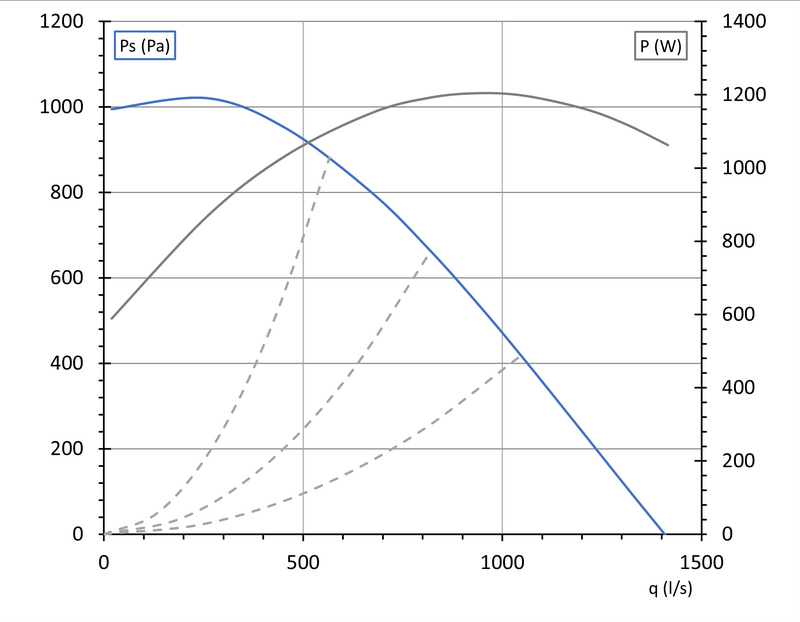 Boxfläkt storlek 700×700 med en effektiv EC-fläkt. Den har ett runt utlopp och ett kvadratiskt inlopp. Man kan även variera riktningen för utloppet genom att enklet med hjälp av snäppen och skruvar modifiera positionen för utloppet. Boxen är isolerad på insidan för tystare drift med 20 mm Polyethylen. Boxen är byggd i galvaniserat stål.