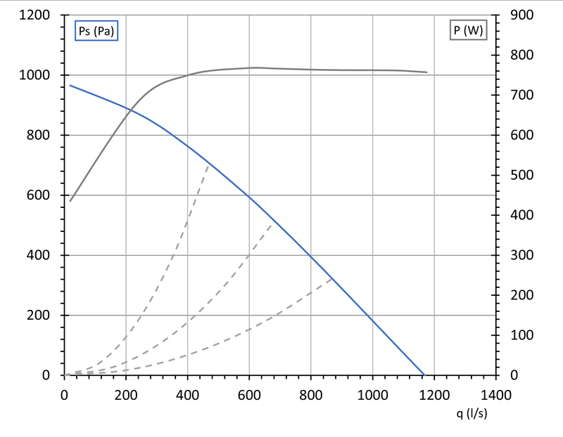 Boxfläkt storlek 700×700 med en effektiv EC-fläkt. Den har ett runt utlopp och ett kvadratiskt inlopp. Man kan även variera riktningen för utloppet genom att enklet med hjälp av snäppen och skruvar modifiera positionen för utloppet. Boxen är isolerad på insidan för tystare drift med 20 mm Polyethylen. Boxen är byggd i galvaniserat stål.
