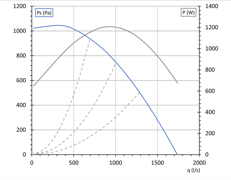 Boxfläkt storlek 700×700 med en effektiv EC-fläkt. Den har ett runt utlopp och ett kvadratiskt inlopp. Man kan även variera riktningen för utloppet genom att enklet med hjälp av snäppen och skruvar modifiera positionen för utloppet. Boxen är isolerad på insidan för tystare drift med 20 mm Polyethylen. Boxen är byggd i galvaniserat stål.