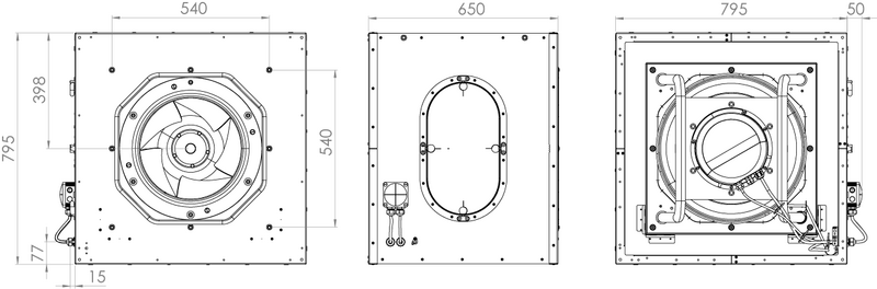 MXFC är en kompakt isolerad kubfläkt, kan anslutas till kanal på en eller två sidor. Flexibel anslutning ø315, ø400 eller ø500 mm (tillbehör). Komplett enhet, enkel driftsättning och installation. Isolerade sidor för låg ljudnivå till omgivning. Försedd med inspektionslucka för enkel rengöring. Underhållsfri drift.