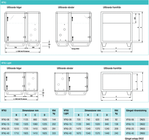 • Finns i två utföranden, VFXU och VFXU Light