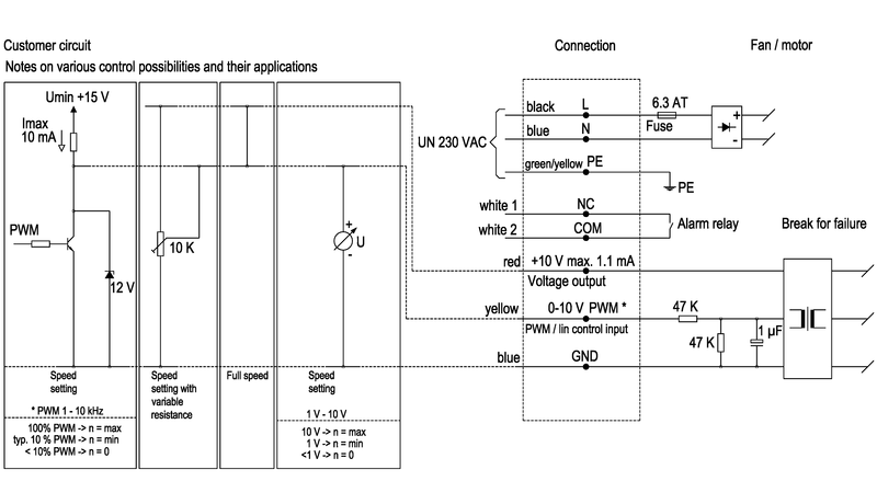 MXAC puhaltimessa on EC energiansäästömoottori integroidulla käyttö- ja ohjauselektroniikalla sekä 0-10V kierrosluvun ohjaussignaalilla.
