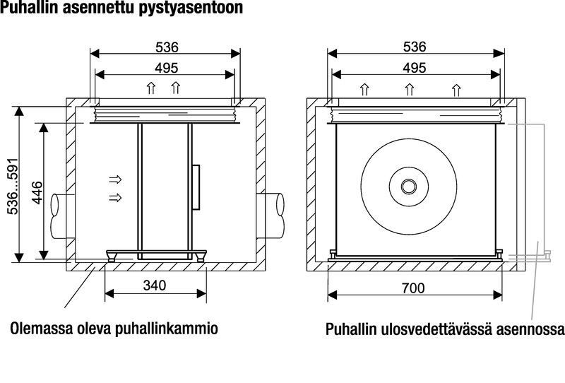 B-siipinen imukammiopuhallin laiteasennuksiin ja kattoläpivienteihin. Yhdeltä puolelta imevä puhallin, jossa on ulkoroottorimoottori ja taaksepäin taivutetut siivet. Puhallin on kompakti kooltaan, ja voidaan asentaa ilmanpoisto- ja LTO-laitteisiin. Puolispiraalityyppinen puhallinkaapu on valmistettu galvanoidusta teräspellistä. Tärinävaimennettu alusta ja joustava painepuolen liitin sisältyvät toimitukseen.
