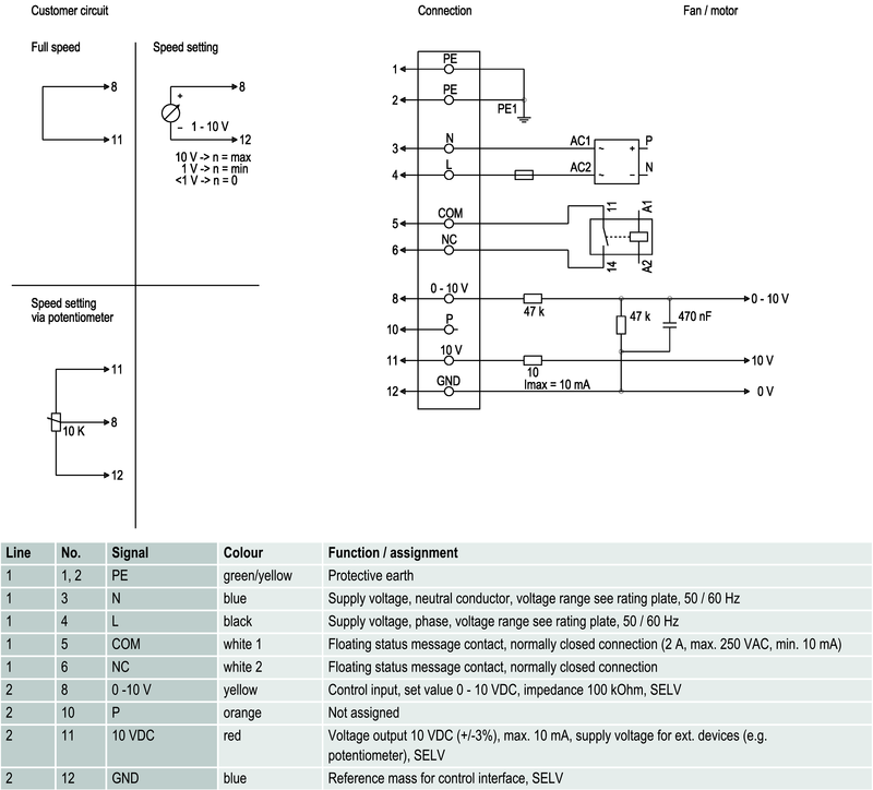 MXAC puhaltimessa on EC energiansäästömoottori integroidulla käyttö- ja ohjauselektroniikalla sekä 0-10V kierrosluvun ohjaussignaalilla.