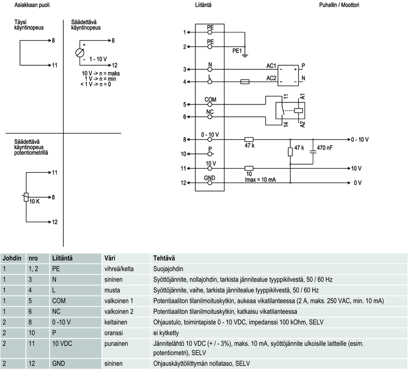 Moottorisuoja / Suoja Elektroniikan/moottorin ylikuumenemissuoja, moottorin virran rajoitus, alijännite-/vaihehäiriötunnistus, pehmeäkäynnistys, kondenssivesireiät