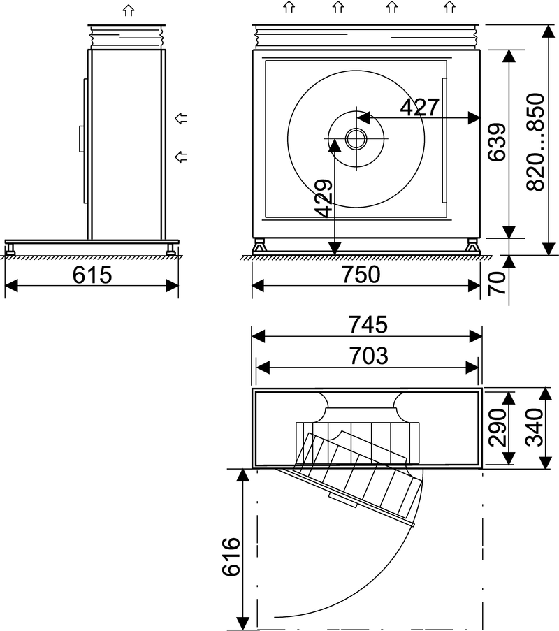 Koko 250 mm; imukartio ■ 400 mm
