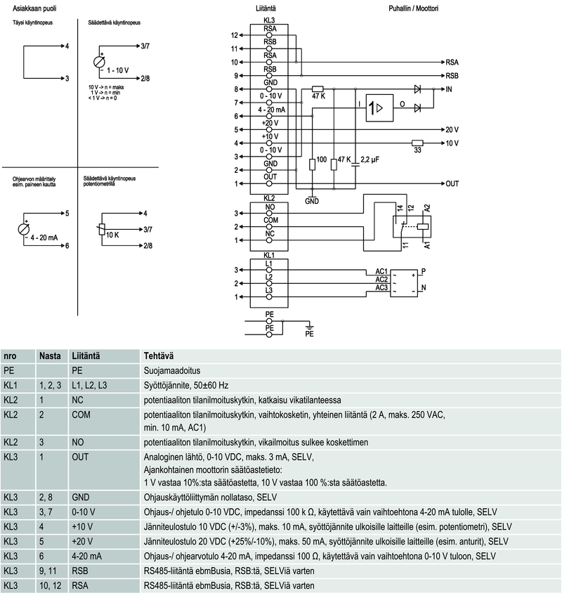 Moottorin malli Elektronisesti kommutoitu EC-ulkoroottorimoottori integroidulla ohjaustekniikalla