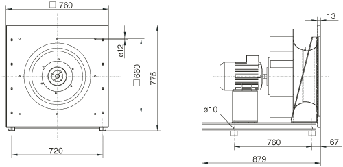 Suoravetoinen puhallin taaksetaivutetuin siivin asennukseen ilmastointikojeeseen. Sopiva uusiin kojeisiin ja varaosapuhaltimeksi vanhempaan kojeeseen. Imukartio on varustettu virtausyhteillä. Toimitukseen kuuluu puhaltimen imupuolelle kangasliitin sekä jousivaimentimet värähtelyn poistoon