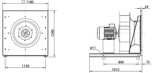 Direktdriven B-hjulsfläkt för montage i ventilationsaggregat. Lämplig för nya aggregat och för byte av fläkt i äldre aggregat. Inloppskona försedd med flödesmätuttag. Levereras med dukstos på inloppet samt fjäderdämpare SP775-06 för avvibrering.