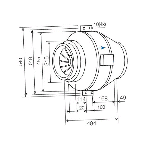 Kanava-asennukseen. Varustettu diagonali-siipipyörällä, joka antaa suhteessa kokoon korkeamman hyötysuhteen. Puhaltimet on varustettu liitäntäkappalleilla jotta asennus helpottuisi. Lisätarvikkseet: Kiinnityshakanen FK helpottaa asennusta / purkamista ja estää värähtelyn siirtymisen kanavaan.