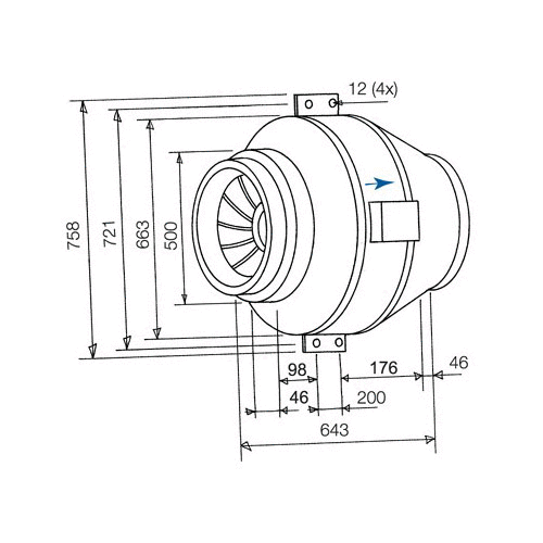 Kanava-asennukseen. Varustettu diagonali-siipipyörällä, joka antaa suhteessa kokoon korkeamman hyötysuhteen. Puhaltimet on varustettu liitäntäkappalleilla jotta asennus helpottuisi. Lisätarvikkseet: Kiinnityshakanen FK helpottaa asennusta / purkamista ja estää värähtelyn siirtymisen kanavaan.