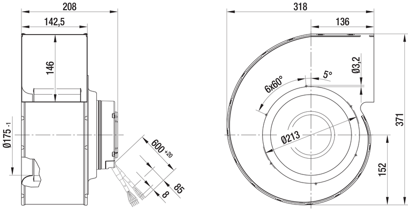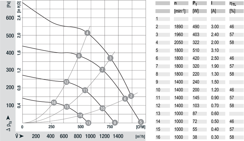 Yhdeltä puolelta imevä radiaalipuhallin eteenpäin taivutetuin siivin. Varustettu energiaasäästävällä EC-moottorilla jossa on integroitu käyttö- ja ohjauselektroniikka.