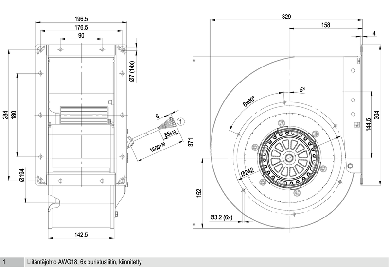 Moottorin malli Elektronisesti kommutoitu EC-ulkoroottorimoottori integroidulla ohjaustekniikalla