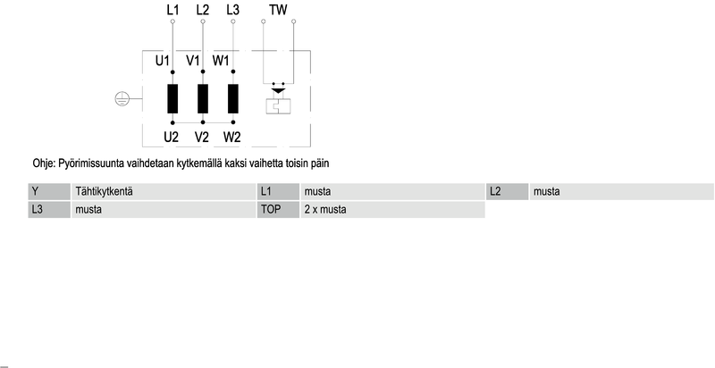Pyörimissuunta Myötäpäivään roottoriin päin katsottuna
