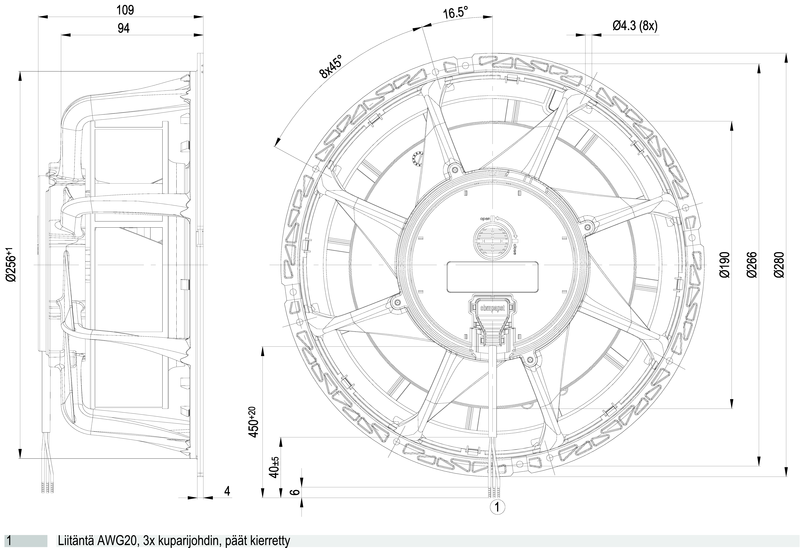| Moottorin malli | Elektronisesti kommutoitu EC-ulkoroottorimoottori integroidulla ohjaustekniikalla |