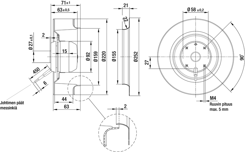| Moottorin malli | Elektronisesti kommutoitu EC-ulkoroottorimoottori integroidulla ohjaustekniikalla |