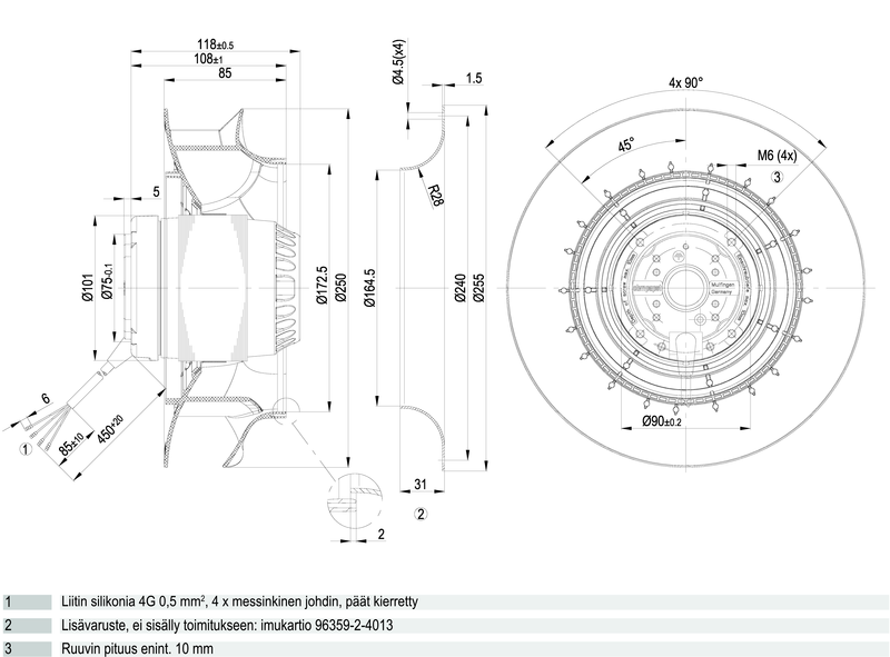 Moottorin malli Elektronisesti kommutoitu EC-ulkoroottorimoottori integroidulla ohjaustekniikalla